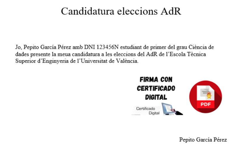 • Aquest document https://www.uv.es/adretse/fotos/plantilla%20candidatura.docx , en pdf, firmat per tu amb el teu certificat digital.